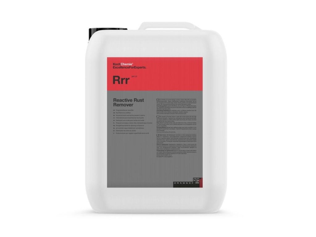 - Koch Chemie Reactive Rust Remover nastříkejte na část auta (odpovídající přibližně 2 dveřím) a nechte 3 až 6 minut působit a následně omyjte proudem vody.